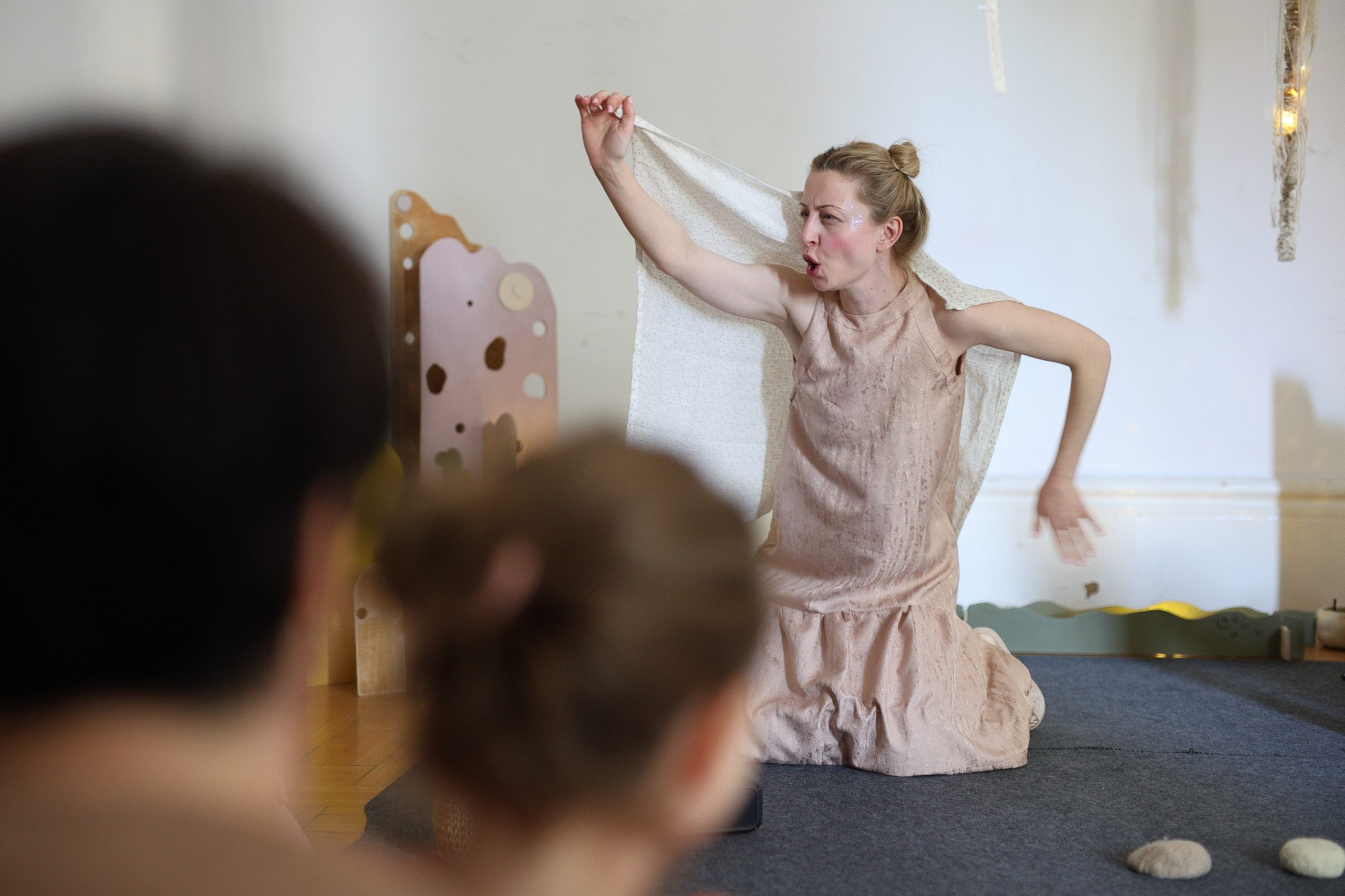 Vrhunac predstave je izložba dječjih radova koji postaju dijelom scenografije.