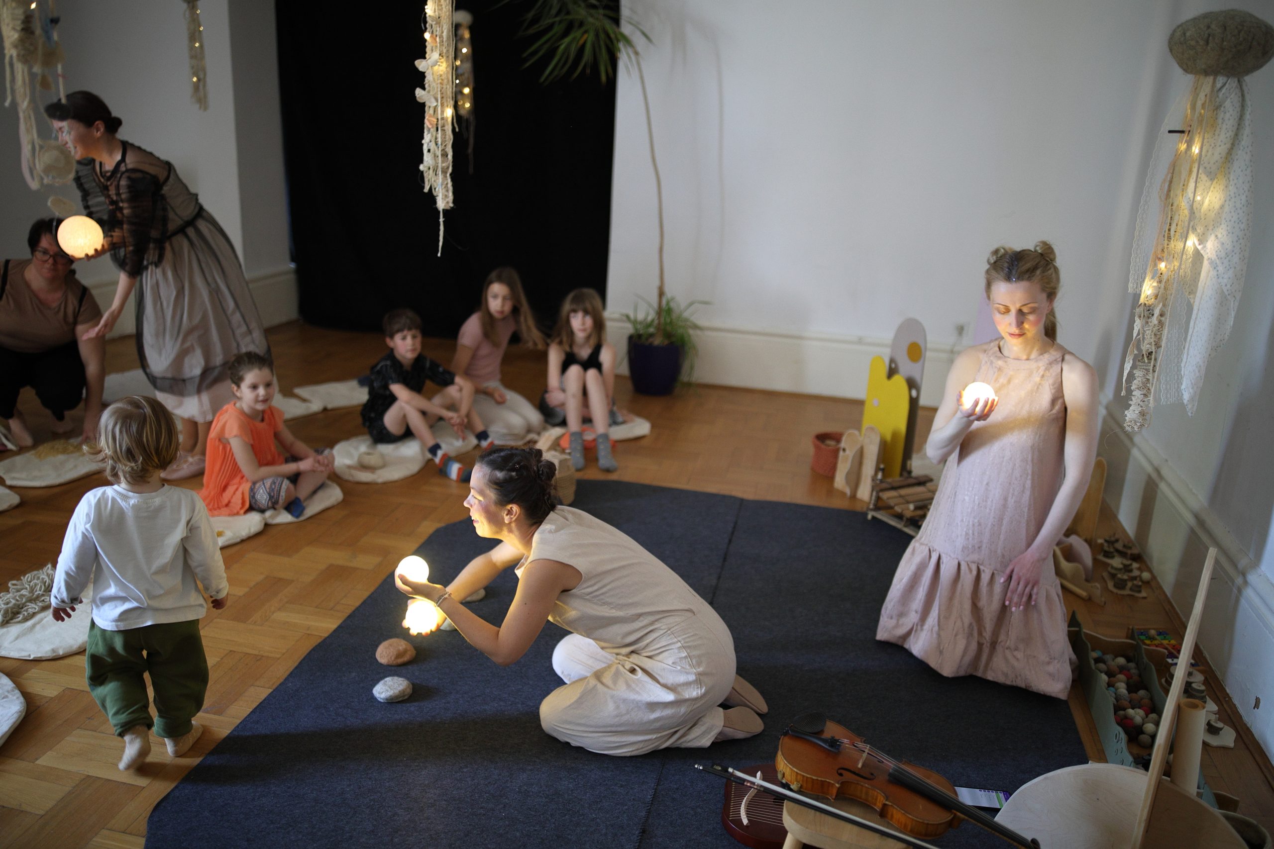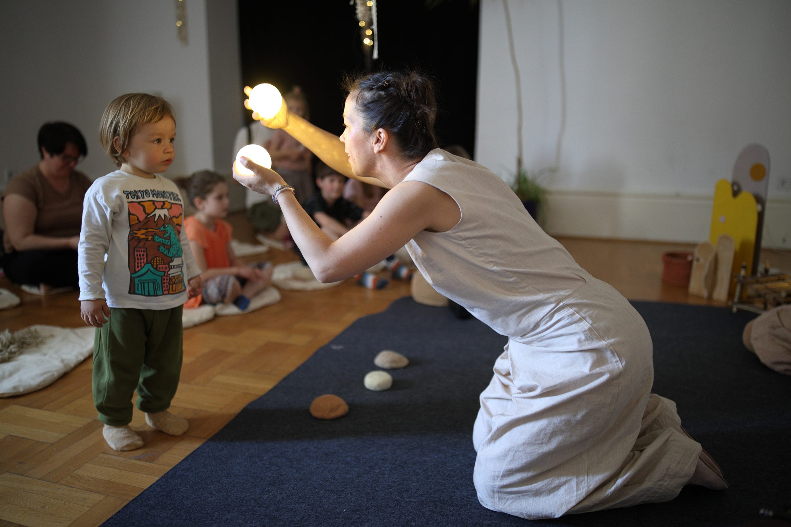 Koristeći glazbu kao polazišnu točku stvaranja, pokret, svjetla i prirodne materijale, poput vune, drva i ugljena, autorice uvode djecu (i njihove odrasle) u svijet koji potiče istraživanje, maštovitost i kreativnost u igri.