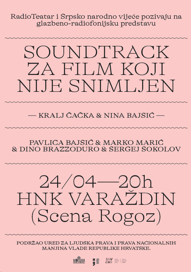 ‘Soundtrack za film koji nije snimljen’ je glazbeno–poetsko-radiofonijska predstava. Publiku će kroz ovo putovanje provesti dvoje osobitih protagonista, koje povezuju poetski senzibilitet u kreativnom radu te sklonost izražavanju u različitim medijima.